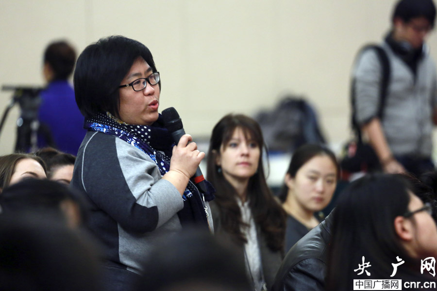 中國婦女報(bào)、中華女性網(wǎng)記者提問(央廣網(wǎng)記者 涂傲 攝)
