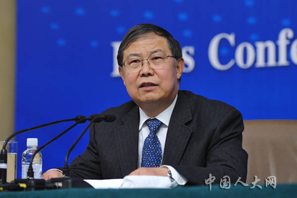 3月6日下午,十二屆全國(guó)人大二次會(huì)議在梅地亞中心舉行記者會(huì),國(guó)家衛(wèi)生和計(jì)劃生育委員會(huì)主任李斌就“衛(wèi)生計(jì)生事業(yè)改革發(fā)展”的相關(guān)問題回答中外記者的提問。圖為十二屆全國(guó)人大二次會(huì)議新聞中心副主任、主持人祝壽臣。中國(guó)人大網(wǎng) 李杰 攝