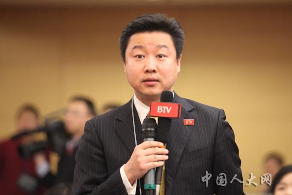 3月10日上午,十二屆全國人大二次會議在梅地亞中心舉行記者會,郭鳳蓮、鐘南山等五位全國人大代表就“人大代表依法履職”的相關問題回答中外記者的提問。圖為北京電視臺記者提問。羅榮 攝