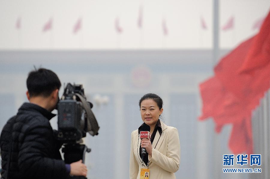 3月3日,中國(guó)人民政治協(xié)商會(huì)議第十二屆全國(guó)委員會(huì)第二次會(huì)議在北京人民大會(huì)堂開(kāi)幕。這是記者在天安門(mén)廣場(chǎng)錄制節(jié)目。 新華社記者 劉金海攝