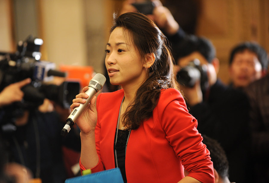 3月2日,全國政協(xié)十二屆二次會議新聞發(fā)布會在人民大會堂一層新聞發(fā)布廳舉行。圖為人民日報(bào)記者提問。新華網(wǎng)/中國政府網(wǎng) 翟子赫 攝