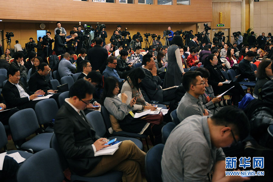 3月11日,十二屆全國人大四次會議新聞中心舉行記者會,邀請環(huán)境保護部部長陳吉寧就“加強生態(tài)環(huán)境保護”的相關(guān)問題回答中外記者的提問。圖為記者會現(xiàn)場。新華網(wǎng)/中國政府網(wǎng) 陳杰 攝