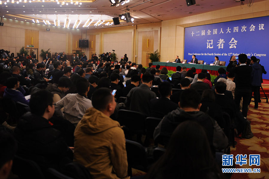 3月11日,十二屆全國(guó)人大四次會(huì)議新聞中心舉行記者會(huì),邀請(qǐng)環(huán)境保護(hù)部部長(zhǎng)陳吉寧就“加強(qiáng)生態(tài)環(huán)境保護(hù)”的相關(guān)問(wèn)題回答中外記者的提問(wèn)。圖為記者會(huì)現(xiàn)場(chǎng)。新華網(wǎng)/中國(guó)政府網(wǎng) 陳杰 攝