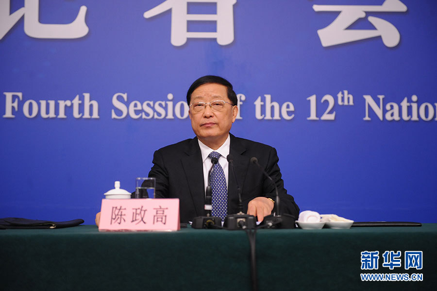 十二屆全國人大四次會議新聞中心于3月15日(星期二)10時在梅地亞中心多功能廳舉行記者會,邀請住房和城鄉(xiāng)建設部部長陳政高、副部長陸克華、副部長倪虹就“棚戶區(qū)改造和房地產工作”的相關問題回答中外記者的提問。圖為陳政高回答記者提問。新華網/中國政府網 陳杰 攝
