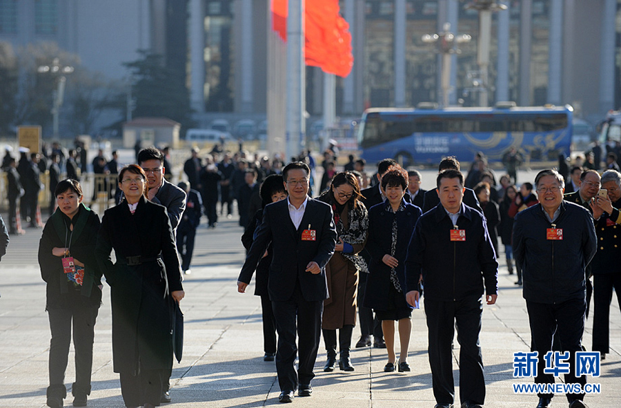 3月11日(星期五)9時(shí),全國政協(xié)十二屆四次會(huì)議在人民大會(huì)堂舉行第三次全體會(huì)議,多名政協(xié)委員將就相關(guān)議題作大會(huì)發(fā)言。圖為政協(xié)委員步入會(huì)場(chǎng)。新華網(wǎng)/中國政府網(wǎng)記者 陳競(jìng)超 攝