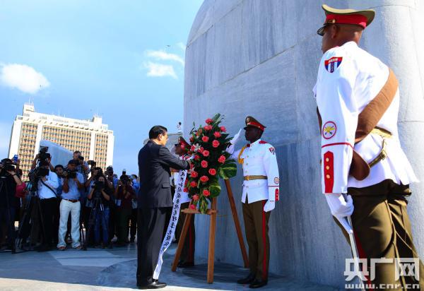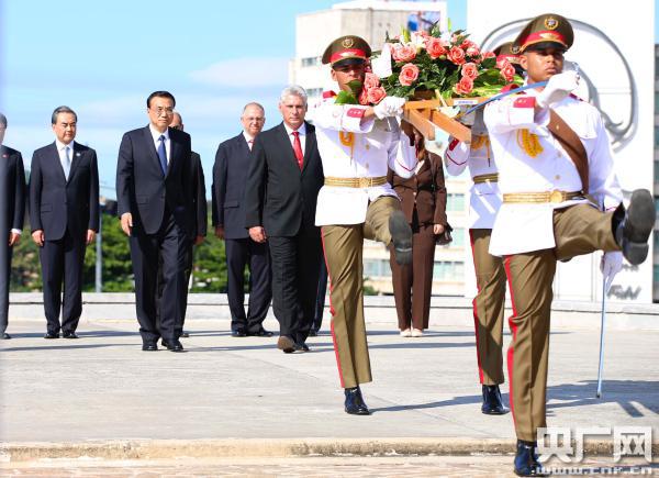 當(dāng)?shù)貢r間9月24日下午,李克強總理向古巴何塞·馬蒂紀念碑獻花圈并參觀紀念館