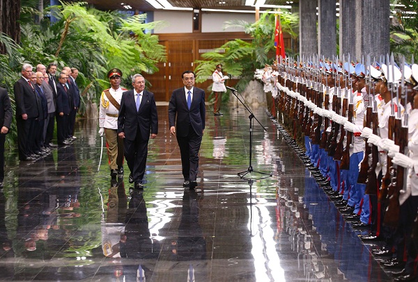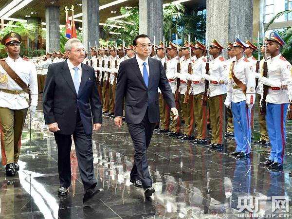 勞爾·卡斯特羅主持儀式歡迎李克強到訪
