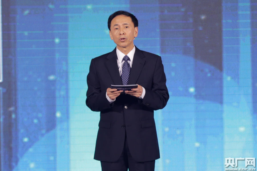 中央人民廣播電臺臺長閻曉明在推介會上致辭。