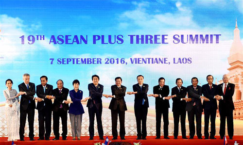 央廣網(wǎng)北京9月8日消息 據(jù)外交部網(wǎng)站報(bào)道,當(dāng)?shù)貢r(shí)間2016年9月7日下午,國(guó)務(wù)院總理李克強(qiáng)在萬(wàn)象國(guó)家會(huì)議中心出席第十九次東盟與中日韓(10+3)領(lǐng)導(dǎo)人會(huì)議,東盟十國(guó)領(lǐng)導(dǎo)人以及日本首相安倍晉三、韓國(guó)總統(tǒng)樸槿惠共同出席。老撾總理通倫主持會(huì)議。