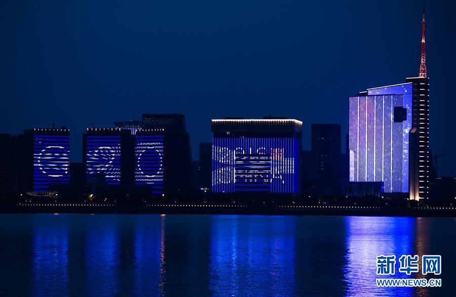 杭州錢塘江岸邊建筑的主題燈光秀(8月31日攝)。