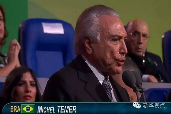 值得一提的是,出席杭州峰會(huì)的特梅爾,奧運(yùn)會(huì)時(shí)的身份還是代總統(tǒng),當(dāng)?shù)貢r(shí)間8月31日,特梅爾正式就任巴西總統(tǒng),杭州峰會(huì)成為他就職后出席的首個(gè)國際會(huì)議。 里約奧運(yùn)會(huì)開幕式上的特梅爾↓