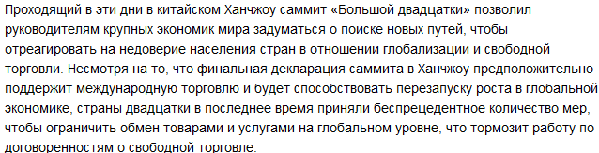 (原文鏈接:Саммит G20: в поисках взаимного доверия для возвращения былых темпов роста в мировой экономике)