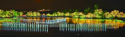 演員在《最憶是杭州》實景演出交響音樂會上表演《美麗的愛情傳說》。新華社發(fā)