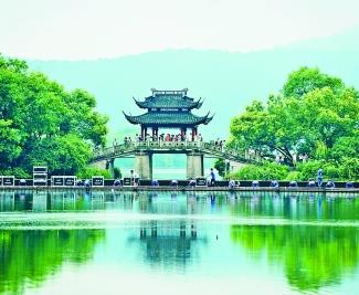 9月7日,游客在杭州西湖曲院風荷景點參觀G20峰會文藝演出《最憶是杭州》的場地。光明圖片/視覺中國