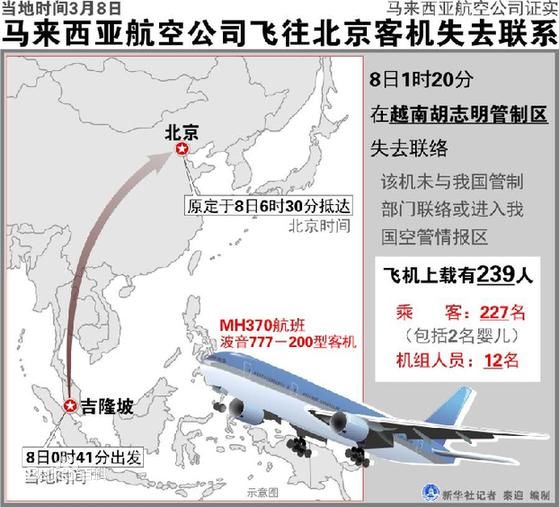 據(jù)外媒報道,馬來西亞航空稱一架由吉隆坡飛往北京的航班失去聯(lián)系,該飛機上載有239人,馬航提供數(shù)字稱機上有158名中國人。目前,這些乘客的情況暫不明朗。