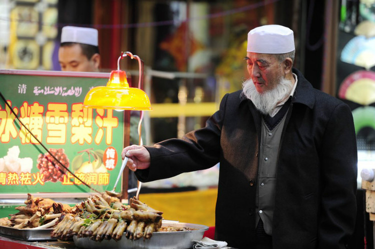 回民街是西安著名的美食文化街區(qū),距今已有上千年歷史,由北院門、北廣濟街、西羊市、大皮院等數(shù)條街道組成;孛窠忠蝻嬍臣械慕謪^(qū)而出名,整個“回坊”地區(qū)飯館林立,4日,2013新絲綢之路聯(lián)合采訪團走進(jìn)“回坊”采擷老西安的味道。晚上的回民街被一層濃厚的市井氣息所籠罩,有著別樣的精彩。熙攘的道路兩旁遍布掛著電燈、汽燈的攤鋪,這些小攤后面是許多經(jīng)營當(dāng)?shù)仫L(fēng)味小吃的飯館,烤肉串、涮牛肚的煙火在不甚明亮的燈光下彌漫著整條街道。(文/圖 祁瀛濤)