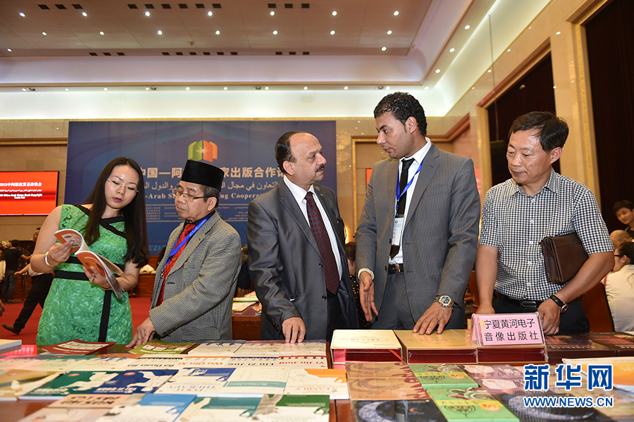 9月1日,2015中國——阿拉伯國家出版合作論壇重要組成部分2015中阿版權(quán)貿(mào)易洽談會在寧夏銀川市召開,來自埃及、約旦等23個(gè)國家的出版機(jī)構(gòu)和國內(nèi)70余家出版機(jī)構(gòu)代表齊聚一堂,就各自的外向型書目、圖書及出版物進(jìn)行展示、推介活動。新華社記者 李然 攝