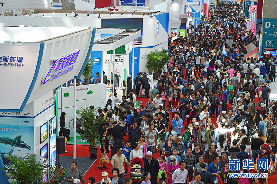 銀川國際會展中心展覽現(xiàn)場人流如織(9月11日攝)。
