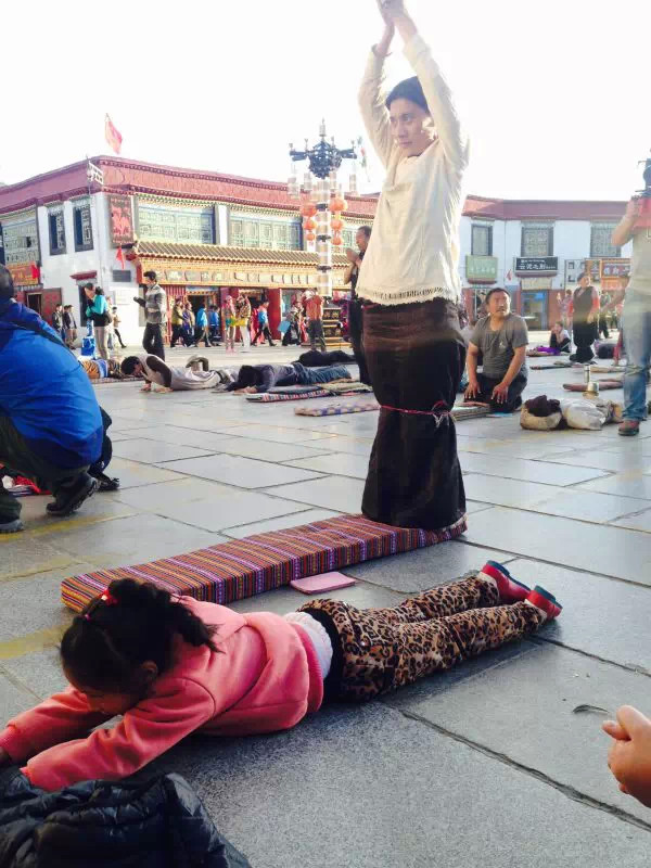 第一個目的地就是大昭寺。到時,已是每天的朝拜時間,眾多朝圣者正在虔誠的做著每天的功課,而我們也在這種氣氛中放松了心情。