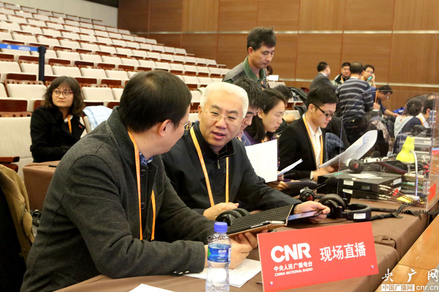 劉曉龍副總編和總編室副主任胡國華就直播文案進行討論 (央廣網(wǎng)記者李江雪 攝)