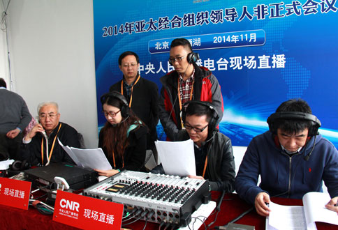 中央人民廣播電臺APEC報道人員在進行直播