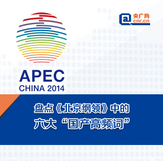 央廣網(wǎng)北京11月12日消息 11日,2014年亞太經(jīng)合組織領(lǐng)導(dǎo)人會(huì)議周活動(dòng)在北京落幕,通過了《北京綱領(lǐng)》和《亞太伙伴關(guān)系聲明》,批準(zhǔn)了一系列重大合作倡議。《北京綱領(lǐng)》中的諸多國(guó)產(chǎn)高頻詞備受矚目,小編帶大家一起盤點(diǎn)!