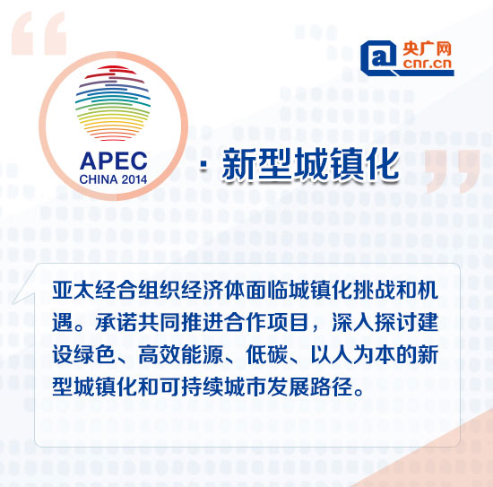 《北京綱領(lǐng)》提到,我們認(rèn)識(shí)到亞太地區(qū)城鎮(zhèn)化正蓬勃發(fā)展。城鎮(zhèn)化的持續(xù)健康發(fā)展有助于促進(jìn)創(chuàng)新增長(zhǎng),實(shí)現(xiàn)亞太強(qiáng)勁、包容和可持續(xù)發(fā)展。亞太經(jīng)合組織經(jīng)濟(jì)體面臨的城鎮(zhèn)化挑戰(zhàn)和機(jī)遇,承諾共同推進(jìn)合作項(xiàng)目,深入探討建設(shè)綠色、高效能源、低碳、以人為本的新型城鎮(zhèn)化和可持續(xù)城市發(fā)展路徑。