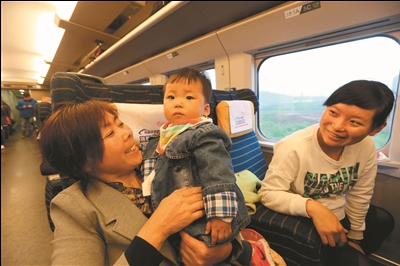 在昨天的D5506次上有一節(jié)專門的車廂,乘客都是工程的建設(shè)者。30歲的馮楊和妻子孟珂坐在車廂的后部,兩人一路翻看著手機(jī)中的照片,照片中是一雙兒女。記者了解到,他們都來(lái)自中鐵十四局海安至南通段的項(xiàng)目部,一個(gè)負(fù)責(zé)橋梁和涵洞的建設(shè),一個(gè)則管理建設(shè)資料。2009年兩人在寧啟鐵路的工地相識(shí),隨后結(jié)婚,如今大女兒已經(jīng)4歲,小兒子2歲。由于兩人都在工地上,無(wú)法照顧孩子,女兒在重慶的奶奶家,兒子在河南的外婆家!皟鹤佣2歲了,我只見過(guò)他3次。”馮楊說(shuō),為了讓寧啟動(dòng)車如期完工,工地上的建設(shè)者們幾乎很少回家。
