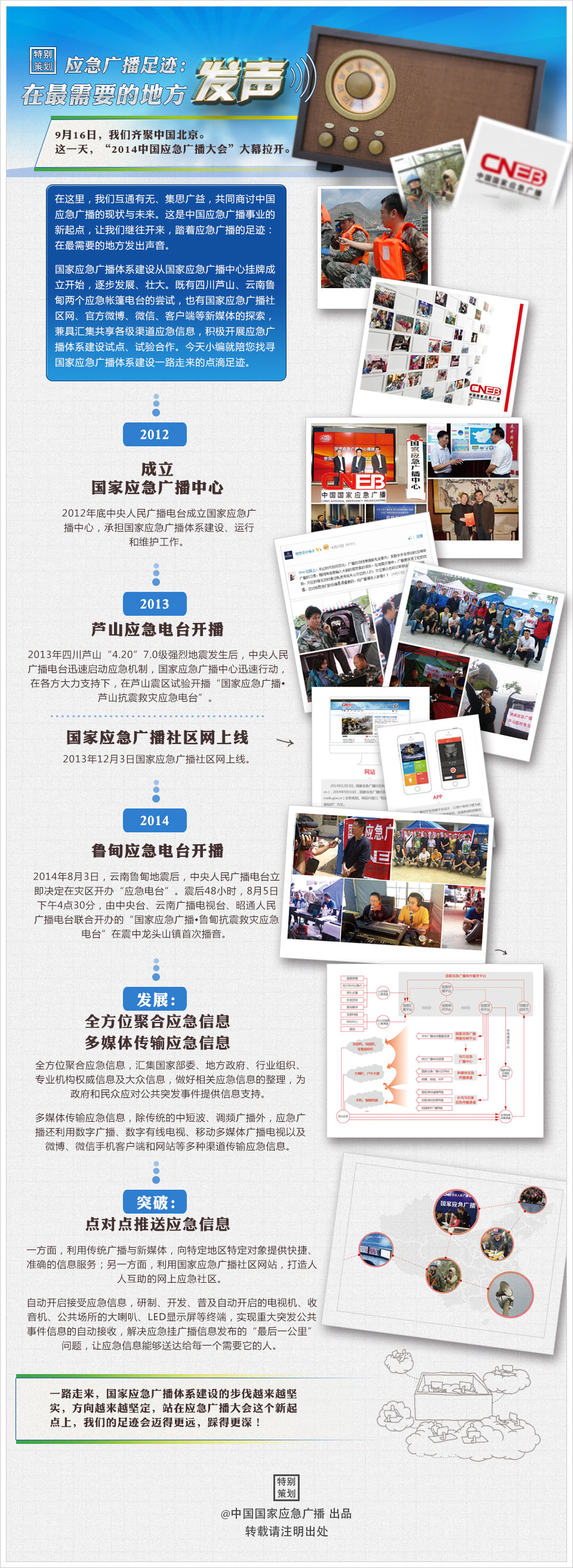 精彩觀點近年來,在我國歷次自然災(zāi)害等重大突發(fā)公共事件的應(yīng)急處置中,廣播及時傳達(dá)政令、發(fā)布權(quán)威信息、引導(dǎo)社會輿論、積極協(xié)助救災(zāi),發(fā)揮了不可替代的獨特作用。 應(yīng)急廣播體系建設(shè)在我國還是新生事物,尚處于初始啟動階段。如何從無到有,建成符合我國國情和實際需要的國家應(yīng)急廣播體系,極具開拓性,未來的任務(wù)會更加艱巨。 廣電部門要繼續(xù)開拓創(chuàng)新、加強探索,也希望各有關(guān)部門和企事業(yè)單位繼續(xù)提供幫助、鼎力支持,通過我們的共同努力,早日建成覆蓋全國、統(tǒng)一聯(lián)動、安全可靠的應(yīng)急廣播體系,更好地服務(wù)社會、造福百姓!