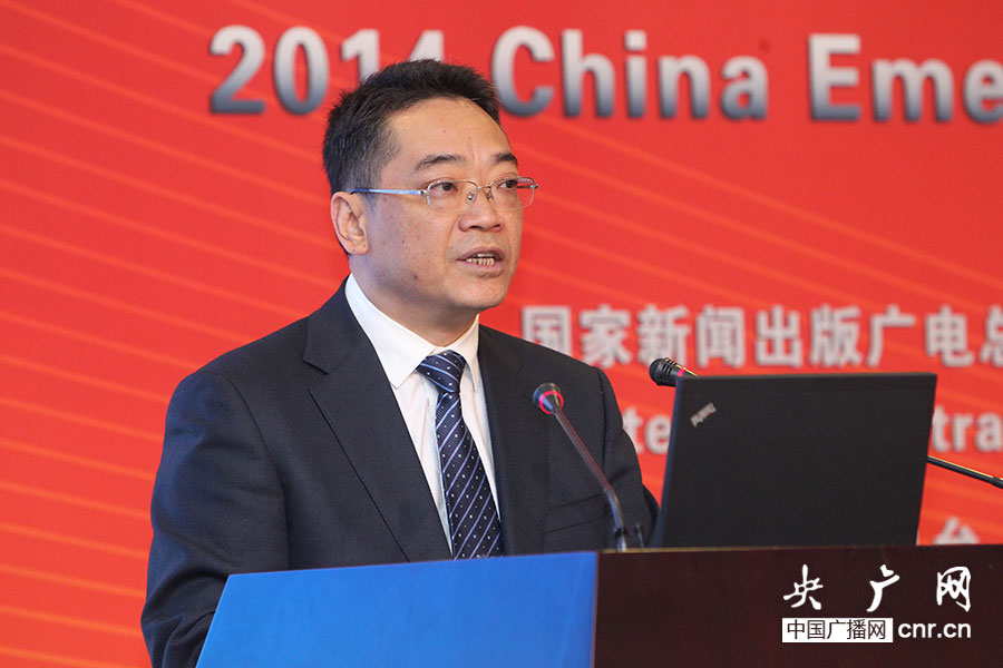 圖為四川省人民政府應(yīng)急辦主任嚴衛(wèi)東做題為《堅持規(guī)劃引領(lǐng) 注重統(tǒng)籌實施 大力推進四川應(yīng)急廣播體系建設(shè)取得新成效》的發(fā)言。(央廣網(wǎng)記者杜虎_攝)