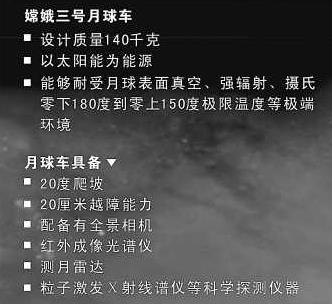 與嫦娥一號的探月軌道不同,嫦娥三號衛(wèi)星將不再采取多次變軌的方式,而是直接飛往月球。嫦娥三號要攜帶探測器在月球著陸,實現(xiàn)月面巡視、月夜生存等重大突破,開展月表地形地貌與地質(zhì)構(gòu)造、礦物組成和化學成分等探測活動。