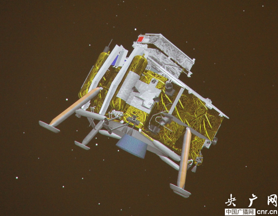 嫦娥三號(hào)探測(cè)器著陸緩沖機(jī)構(gòu)展開(kāi)到位(3D模擬動(dòng)畫(huà))(央廣網(wǎng)發(fā) 朱虹攝)