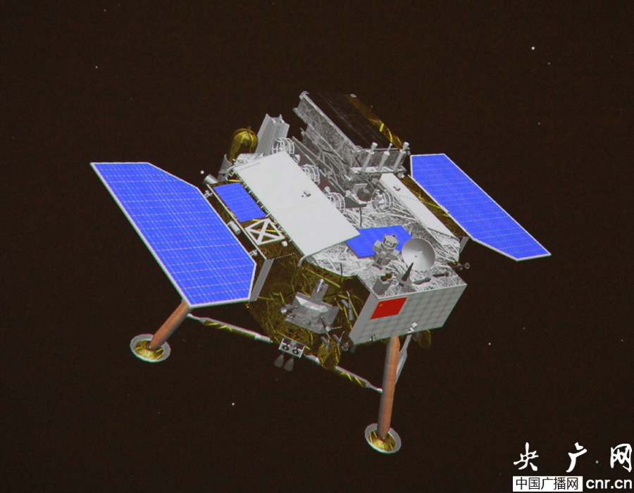 嫦娥三號探測器太陽翼展開到位(3D模擬動畫)(央廣網(wǎng)發(fā) 朱虹攝)