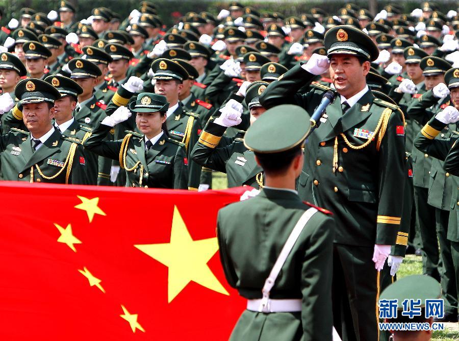 5月13日,武警官兵舉行出征前的宣誓儀式。當(dāng)日,武警上?傟(duì)浦東新區(qū)支隊(duì)舉行主題為“亞信安保樹形象、浦東衛(wèi)士鑄忠誠”安保誓師動(dòng)員大會(huì)。誓師完畢后,部隊(duì)出征奔赴各自警戒目標(biāo),將相繼擔(dān)負(fù)亞信峰會(huì)現(xiàn)場(chǎng)警衛(wèi)、專機(jī)警衛(wèi)、社會(huì)面武裝巡邏、軌交站點(diǎn)執(zhí)勤等任務(wù)。亞洲相互協(xié)作與信任措施會(huì)議第四次峰會(huì)將于5月20日至21日在上海舉行。 新華社記者 陳飛 攝