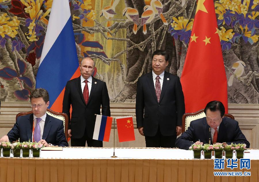 5月21日,國家主席習近平和俄羅斯總統(tǒng)普京在上海共同見證中俄兩國政府《中俄東線天然氣合作項目備忘錄》、中國石油天然氣集團公司和俄羅斯天然氣工業(yè)股份公司《中俄東線供氣購銷合同》的簽署。新華社記者 龐興雷 攝