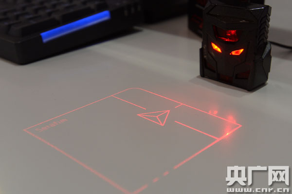 臺灣精品館展出全球第一個雷射投影鼠標(biāo),只需在桌面投影范圍內(nèi)輕松移動即可操作電腦