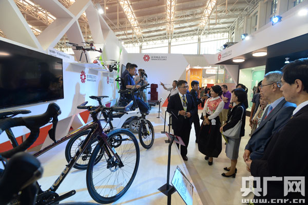 該展館中的139件展品從1155件臺灣高端制造業(yè)產(chǎn)品中選拔而出,其中可以使手機降溫的手機殼、全球最輕的自行車等14款產(chǎn)品擁有“全球第一”的頭銜。