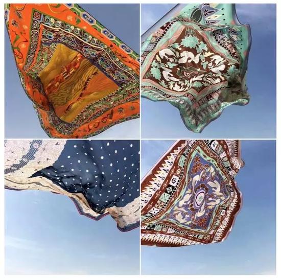 新一季皇錦“敦煌”系列主題絲巾,在敦煌的黃沙與藍(lán)天之間盛開……