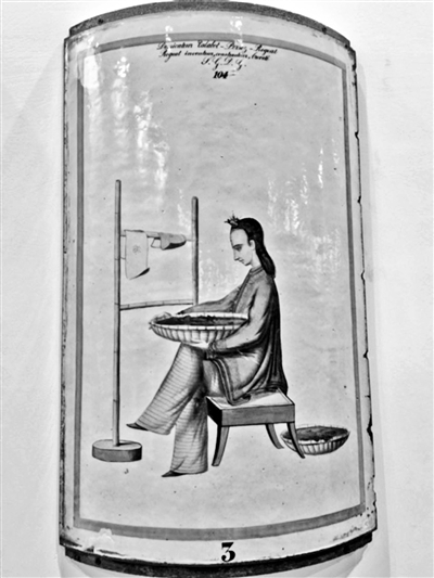 法國(guó)作為“敦煌文博會(huì)”的主賓國(guó),首次將里昂紡織和裝飾藝術(shù)博物館的藏品帶來敦煌,以此致敬絲綢之路的貢獻(xiàn),展出曾在1855年巴黎世博會(huì)上獲獎(jiǎng)的“塔拉博·佩爾索茲·羅嘉干燥器”的裝飾板,不僅展示了該蠶絲干燥器在技術(shù)層面的創(chuàng)新,其獨(dú)特的人物畫裝飾也以短劇的形式詳細(xì)再現(xiàn)了制造蠶絲的步驟和中國(guó)傳統(tǒng)的養(yǎng)蠶術(shù)。