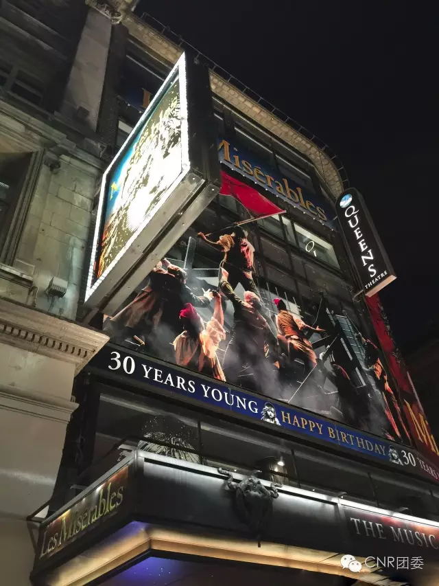 此次英國之行,最大的滿足之一就是現(xiàn)場欣賞了慕名已久的音樂劇《悲慘世界》。請注意女王劇場海報下面的一行小字:而立之年,生日快樂。從1985年誕生至今,歷時三十周年。