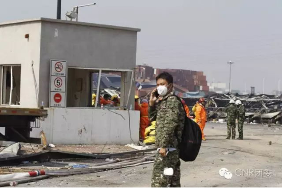 天津?yàn)I海新區(qū)爆炸,楊博宇在現(xiàn)場采訪。