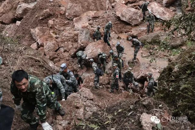 走過了這段路就到了停放尸體的地方。戰(zhàn)士們決定用鐵鎬從滑坡的兩頭相向開路,而我決定:決不再跟著他們往回走!戰(zhàn)士們走后,留下我一個(gè)人好安靜,頭上不遠(yuǎn)的地方是遇難者的遺體,腳下是一塊A3紙大小的地方,邊上的山體到處都是裂縫,余震一個(gè)勁兒的發(fā)生,我甚至想到了如果來次大的,上面的尸體會(huì)不會(huì)砸到我的頭頂......這是這么多年來 我所經(jīng)歷的最漫長(zhǎng)的等待。整整40分鐘,我一遍一遍的嚇唬著自己,直到再次看到戰(zhàn)士們的身影。