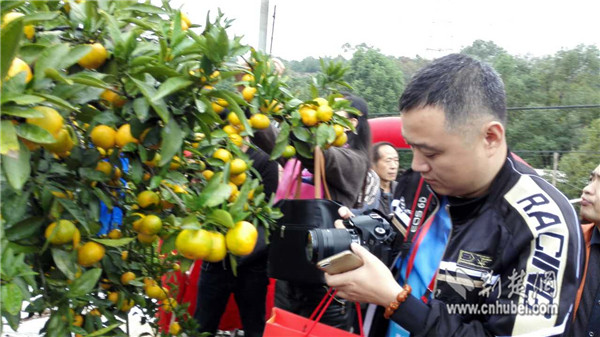 網(wǎng)絡(luò)媒體記者在拍攝橘子。記者鐘劍橋 攝