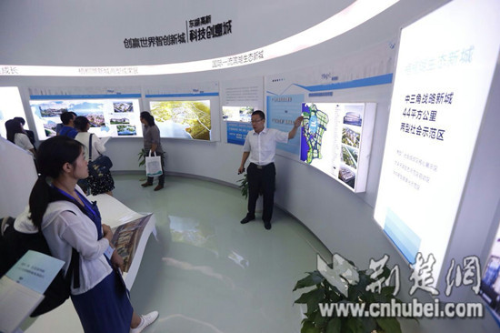 工作人員介紹鄂州梧桐湖新區(qū)發(fā)展情況