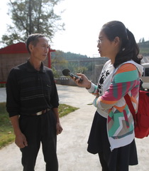 中央臺記者張棉棉在潔源村采訪當(dāng)?shù)亟ㄔO(shè)情況