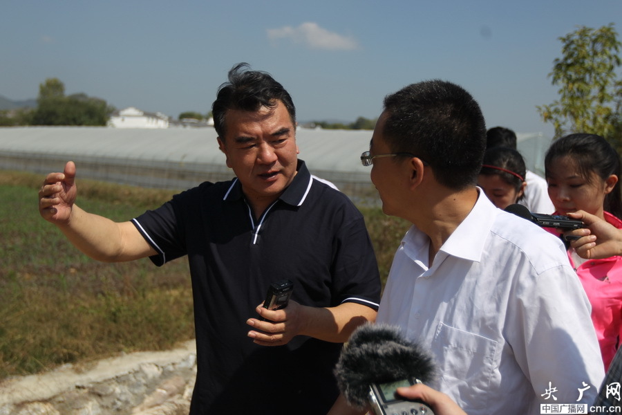 10月10日,“中央臺紀(jì)念紅軍長征八十周年大型報道”——《長征,從這里出發(fā)》正式啟程,中央人民廣播電臺臺長王求率領(lǐng)采訪組一行,重新回到長征出發(fā)的地方,尋訪紅色的足跡,看蘇區(qū)振興如何迎來“新長征”。10日上午,采訪組來到瑞金市沙洲壩鎮(zhèn)潔源村,對該村推進(jìn)村莊改造、完善生活配套施舍、創(chuàng)新農(nóng)村發(fā)展模式等問題進(jìn)行了采訪。圖為沙洲壩鎮(zhèn)黨委書記賴毅宇對記者介紹具體情況。央廣網(wǎng)記者 李聰格 攝