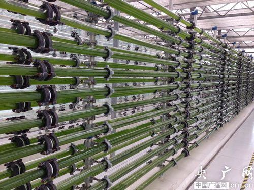 該實(shí)驗(yàn)室中展示的微藻生物固碳技術(shù)是該集團(tuán)技術(shù)創(chuàng)新的重要組成部分。它是利用微藻光合作用吸收工農(nóng)業(yè)生產(chǎn)過(guò)程中排放的二氧化碳等廢棄,通過(guò)低成本收集和高效油脂提取等后處理技術(shù),聯(lián)產(chǎn)生物柴油、保健品原料和飼料添加劑等產(chǎn)品。據(jù)稱,目前該技術(shù)已成功入選國(guó)家高技術(shù)研究發(fā)展計(jì)劃(863計(jì)劃),并獲得專項(xiàng)基金支持。內(nèi)蒙古達(dá)拉特旗已開(kāi)展國(guó)家級(jí)微藻生物能源產(chǎn)業(yè)化示范項(xiàng)目。原本平凡的微藻泥,竟然成為了生物柴油和食用油的來(lái)源,這項(xiàng)技術(shù)不僅帶來(lái)了環(huán)保開(kāi)發(fā)、高效開(kāi)發(fā),還實(shí)現(xiàn)了零排放,實(shí)在可謂神奇。