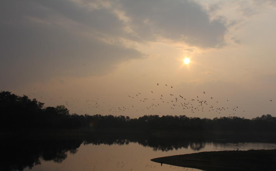 暢游觀湖島:行雁追晚霞