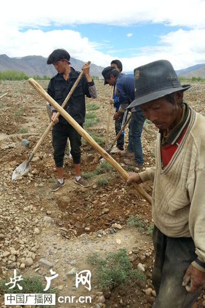 央廣網日喀則7月28日消息(記者劉飛 普布次仁)在西藏雅魯藏布江北岸,柳果村村民米瑪正在種植沙棘,一鐵鍬下去,幾乎沒有碰到土,而全是鵝卵石,發(fā)出乒乓的響聲。他說,這里常年風沙大,沙子一直吹到村子里。