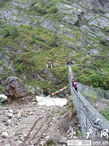 如今這里界河上有三座“熱索橋”。一座橋板已經(jīng)七零八落,沒(méi)法再使用,一座是正在使用的鐵索橋。還有一座就是最新的熱索橋,橋面寬闊,聯(lián)通中尼兩邊道路,就快完工。這正是在為今年10月,吉隆熱索橋口岸的正式擴(kuò)大開(kāi)放所做的建設(shè)準(zhǔn)備。